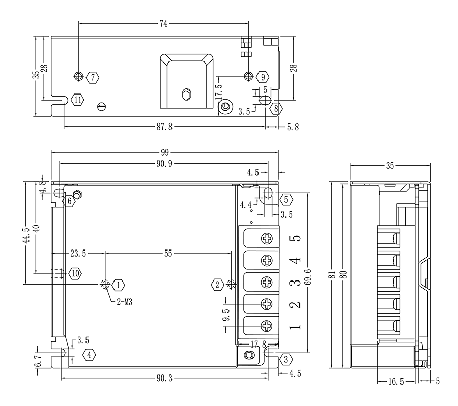 單路開關電源安裝尺寸及接線