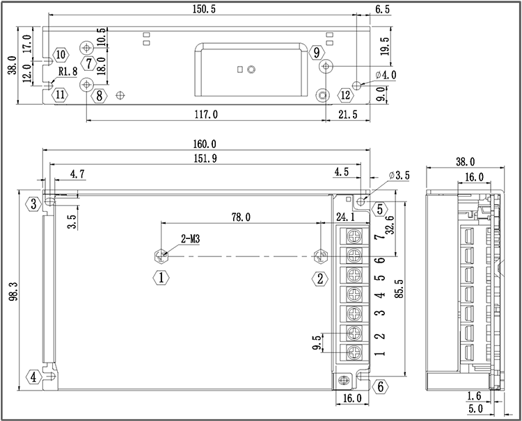 華成系列機(jī)械手控制系統(tǒng)開關(guān)電源及制動電阻尺寸圖,統(tǒng)一適用所有系列型號產(chǎn)品,開關(guān)電源分單路及雙路,如下: