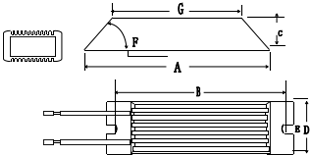 型號 | 25℃-40℃額定功率(W) | 外形尺寸(mm) | 阻值范圍 | ||||||