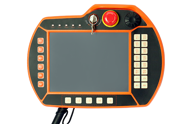 EC-RX系列機器人控制系統——為華成六軸關節機器人控制系統專用手控器,操作面板上的F1-F5按鍵作用,手控器上具體位置如下: