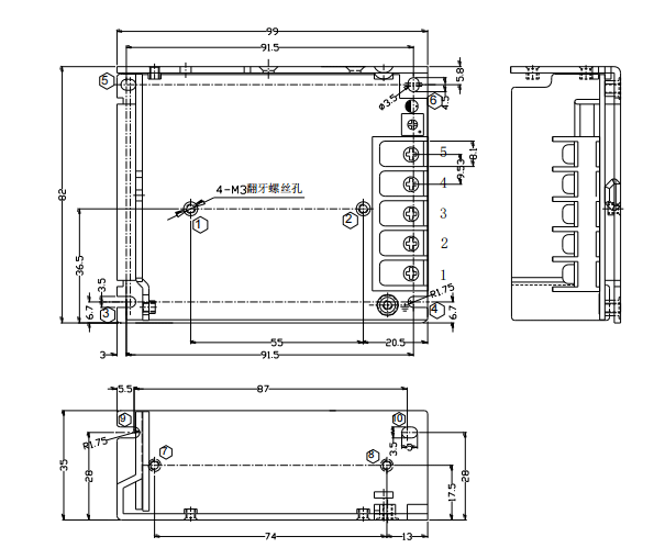 注塑機(jī)械手控制系統(tǒng)系列為HC-S3/HC-S5型號產(chǎn)品,安裝時(shí)尺寸圖如下。