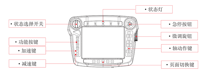 注塑機機械手按鍵講解,產(chǎn)品為華成系列注塑機械手控制系統(tǒng),下圖為注塑驅(qū)控一體EC-S3/S5產(chǎn)品。目前華成注塑機械手手控器外觀包括有黑色(標(biāo)準(zhǔn)系統(tǒng))、灰色、橙色三款,但功能不受影響,示教器基本功能如下:
